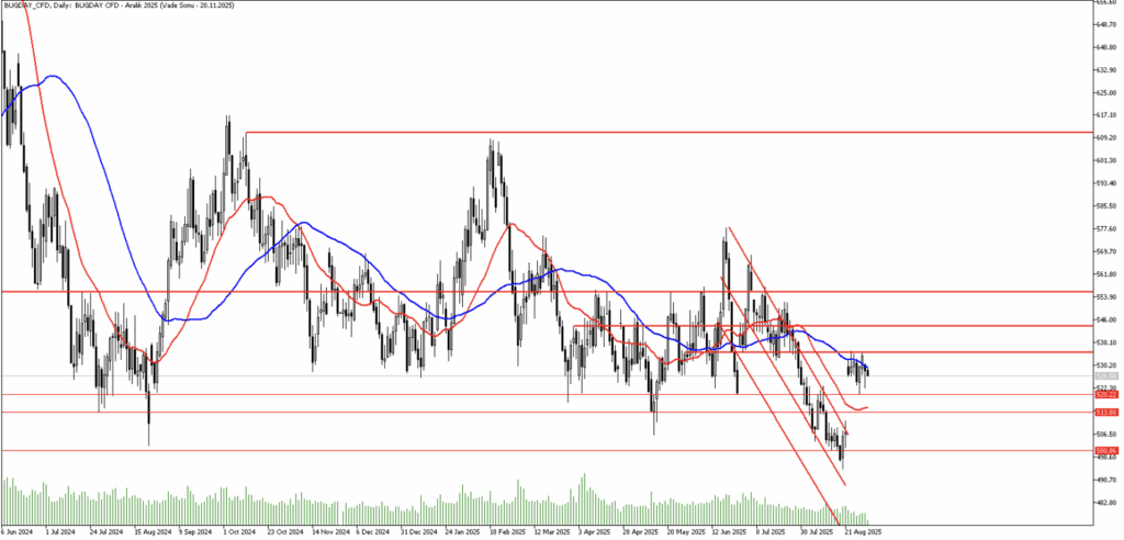 Bu seviyenin de kırılması halinde 520 seviyesi karşımıza çıkacaktır. Buna karşın yukarı yönlü tepki hareketlerinde 535 seviyesi yakın direnç konumunda bulunuyor.
