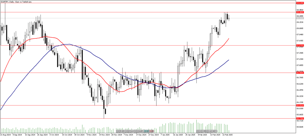 EURTRY paritesinde 38.40 seviyesini direnç olarak takip etmeye devam ediyoruz. Paritede bu direncin aşılması halinde 38.63 zirvesi tekrar test edilebilir. Olası geri çekilmelerde ise paritede 38.10 ve 37.90 seviyeleri yakın destek olarak izlenebilir.