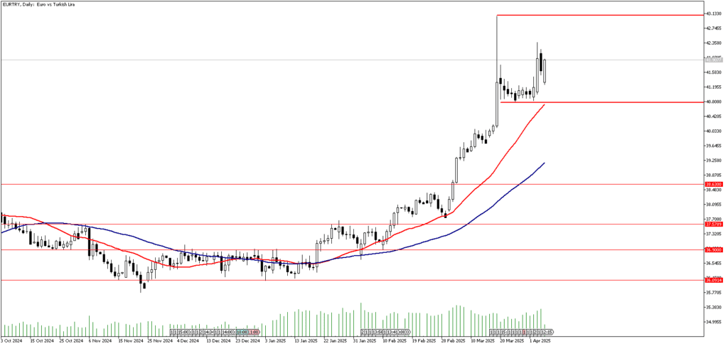 EURTRY paritesi haftaya negatif başlayıp 41.25 seviyesini test etse de bu seviyeden aldığı tepki ile 41.90 seviyesine kadar yükselmiş durumda. Paritedeki yükseliş eğiliminin sürmesi halinde yukarı yönde 42.30 seviyesini direnç olarak takip edeceğiz. Aşağı yönde ise 41.50 ve 41.25 seviyeleri yakın destek olarak takip edilebilir.