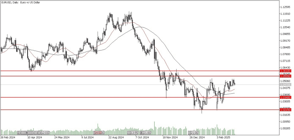 Dirençler: 1.0555 / 1.0610 / 1.0630