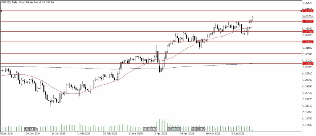 GBPUSD paritesi 1.3635 seviyesini aştı. Bu seviye üzerinde kalıcılık sağlanması halinde 1.3820 seviyesi direnç olarak takip edilebilir. Öte yandan olası kar realizasyonlarında 1.3635 destek konumunda izlenebilir. Bu seviyenin kırılması durumunda 1.3445 seviyesi destek olarak karşımıza çıkacaktır.