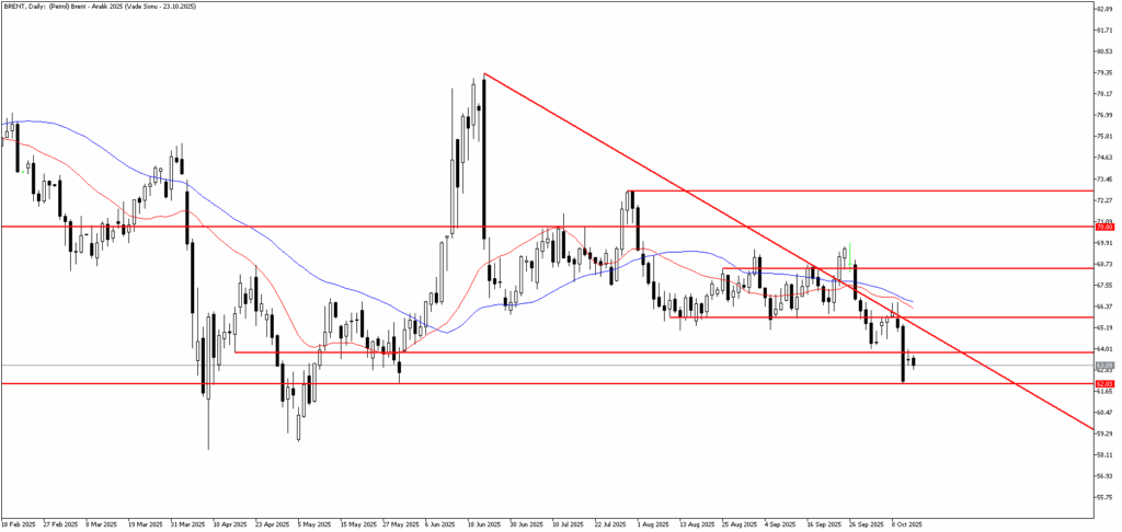 Brent Teknik Analiz: Brent petrol’de satıcılı seyir devam ediyor. Teknik açıdan 63.80 seviyesi kritikti. Bu seviye aşılamadı. 63.80 altında fiyatlama devam ettiği sürece zayıf görünümün devam etmesini bekleriz. Aşağıda 62.00 seviyesi destek konumunda çalışmaya devam edecektir.