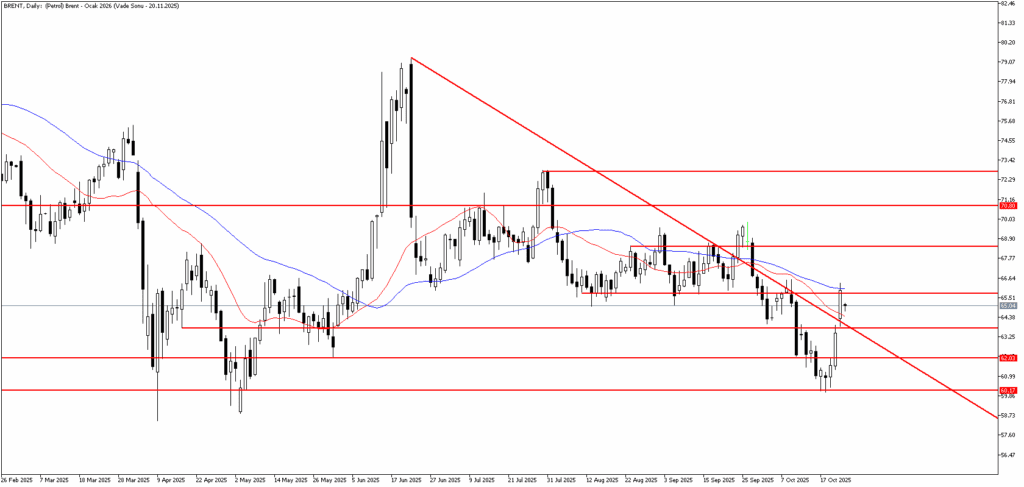 Petrol’de yukarı yönlü eğilim devam ediyor. ABD’nin Rusya’ya uyguladığı yaptırım kararının etkisinin sürdüğünü söylemek mümkün. Rosneft PJSC ve Lukoil PJSC’ye uygulanan yaptırımların ardından, Rusya’nın Hindistan’a yönelik petrol sevkiyatlarının sert şekilde azalması bekleniyor. Bazı Çinli devlet rafinerileri de Rus petrolü alımlarını iptal etti. Bunun yanı sıra ABD ve Avrupa Birliği’nin Rusya’nın en büyük üreticilerine yaptırım açıklamasının ardından petrol fiyatları yükselmeye devam etti. ABD Başkanı Donald Trump ise, Salı günü yaptığı açıklamada, gelecek hafta Güney Kore’de planlanan görüşme sırasında Çin Devlet Başkanı Şi Cinping ile Çin-Rusya petrol ticaretini ele alacağını söyledi. Teknik açıdan Brent petrol’de 63.80 – 65.80 bandı takip edilecek. Ham petrol’de ise 61.50 seviyesi kritik. Bu seviye üzerinde günlük kapanışlarda yukarı yönlü eğilim devam edebilir.