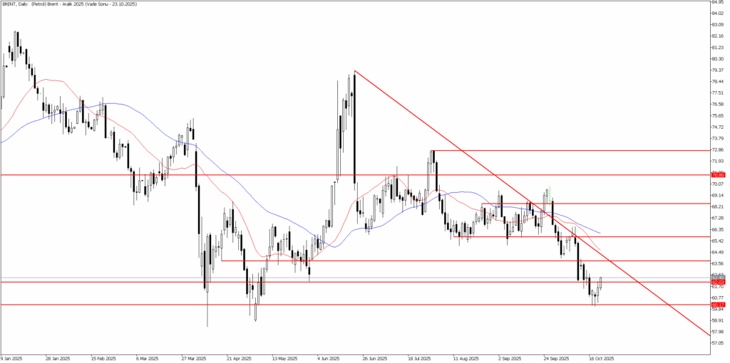 Petrol piyasasında tepki alımları hakim. Yükseliş eğilimi içerisinde son 2 günde hareketlilik izliyoruz. ABD ile Çin arasında çıkan haberlerde ek gümrük vergisinin artırıldığına dair bilgi akışı vardı ancak resmi olarak doğrulanmadı. Bununla birlikte petrol piyasasında alımlar hız kazandı. Gösterge olan Brent Petrol’de yarın vade sonu olmasından dolayı temkinli olmakta fayda var. 62.00 seviyesi önemli bir eşik bölgesiydi. Bu seviye üzerinde kalıcılık sağlanması alım yönlü pozisyonlar açısından olumlu. Ancak vade sonunda hareketliliğin hız kazanmasını bekleriz. Bunun yanı sıra Çin ABD arasında yaşanacak gelişmeler ve gelecek haber akışları kritik olacaktır. Yukarı yönlü eğilimin devam etmesi halinde 63.80 seviyesini direnç konumunda takip ediyoruz. Olası geri çekilmelerde ise 60.00 seviyesi ana destek bölgesi olarak izlenebilir. Ham petrol’de ise alçalana trend aşıldı. Bu trendin bulunduğu 57.55 seviyesi destek konumunda takip edilecek. Yukarıda ise 60.00 seviyesi ana direnç bölgesi olacaktır.