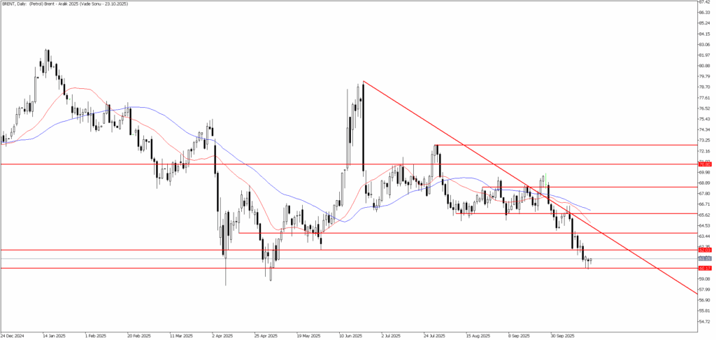 Brent Petrol 60.00 desteği üzerinde tutunmaya devam ediyor. Son yaşanana arz ve talep yönlü gelişmeler fiyatların baskılanmasına neden olmuştu. Şu an gündem Çin ile ABD arasında yapılacak görüşmede. ABD Başkanı Donald Trump, Çin Devlet Başkanı Şi Cinping ile “çok adil” bir anlaşmaya varacaklarını ve “çok güçlü bir ticaret anlaşması” yapacaklarını düşündüğünü ifade etti. Bir anlaşma olması durumunda petrol talebine yönelik olumlu anlamda beklentiler güç kazanacaktır. Bu tepki alımlarının hız kazanmasına neden olabilir. Diğer yandan İsrail Gazze sınırında yaşanan gelişmeleri de yakından takip etmeye devam ediyoruz. Teknik açıdan Brent Petrol’de 60.00 seviyesi ana destek bölgesi olmaya devam edecektir. Yukarı yönlü tepkilerde 62.00 seviyesini izleyeceğiz. Ham petrol’de ise alçalan trendin aşılmasına ihtiyaç var. Bu bağlamda 58.00 seviyesi direnç konumunda takip edilecek. Petrol piyasasında genel anlamda görünüm zayıf ancak olası tepki alımları haber akışlarına bağlı olacaktır.