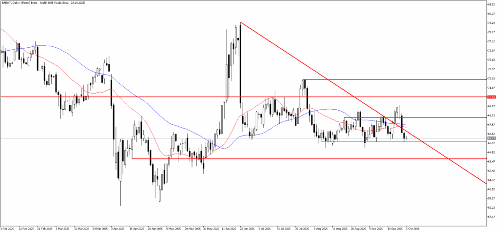 Brent Teknik Analiz: Brent petrol’de gelen sert satış sonrası güçlü ana destek bölgesi olan 65.75 seviyesinden tepki geldi. Bu seviye üzerinde kalmaya devam ettiği sürece yukarı yönlü eğilim tekrar hız kazanabilir. Bu senaryoda 50 günlük hareketli ortalamanın bulunduğu 67.60 seviyesi direnç konumunda takip edilebilir.