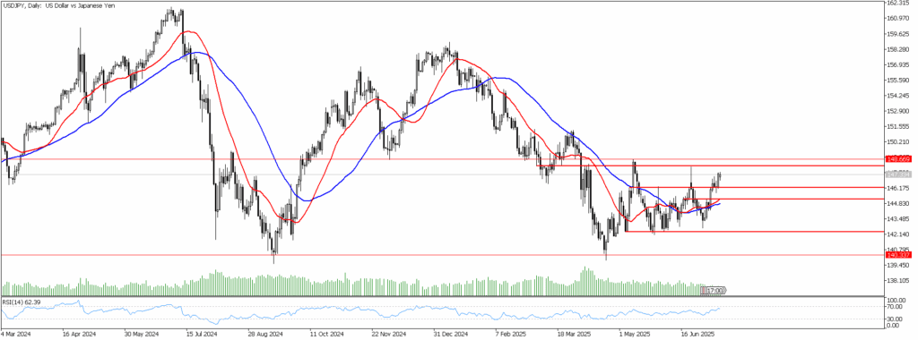 USDJPY paritesi yukarı yönlü eğilimini sürdürüyor. Bu eğilimin devam etmesi halinde sıralı direnç seviyeleri olan 148.00 ve 148.65 seviyelerinin test edilmesi beklenebilir. Buna karşın aşağı yönlü eğilimlerde ise 145.70 seviyesini destek olarak izleyebiliriz. Bu desteğin kırılması halinde paritede 22 günlük hareketli ortalamanın da bulunduğu 145.22 seviyesi test edilebilir.