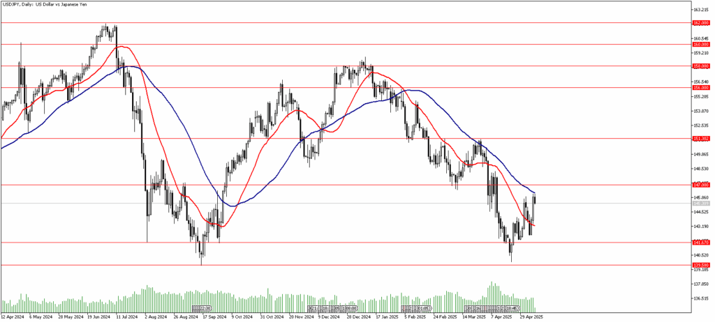 USDJPY paritesi 50 günlük hareketli ortalamanın bulunduğu 146.34 seviyesini direnç olarak takip ediyoruz. Paritede bu direncin aşılması halinde 147.00 seviyesinin üzeri tekrar test edilebilir. Olası geri çekilmelerde ise paritede 144.50 seviyesi destek olarak takip edilebilir.