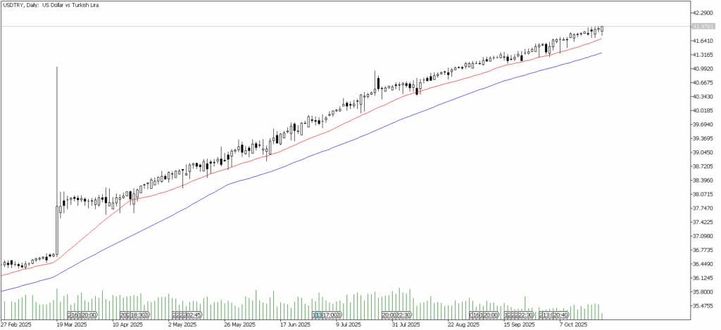 USDTRY paritesi rekor seviyesinde fiyatlamayı sürdürüyor. 42.00 seviyesi kritik direnç konumunda. Olası geri çekilmelerin ise 22 günlük hareketli ortalamanın bulunduğu 41.68 seviyesiyle sınırlı kalmasının bekliyoruz.
