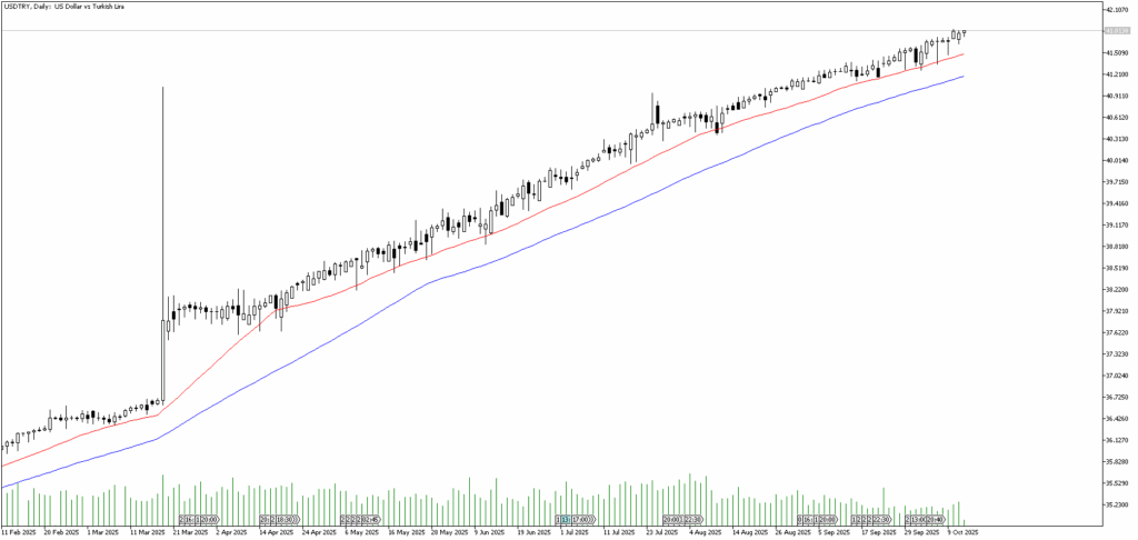 USDTRY paritesinde yukarı yönlü eğilim sürüyor. Şu an zirve seviyesinde fiyatlamanın devam ettiğini söylemek mümkün. Bu bağlamda 42.00 seviyesi kritik direnç bölgesi olarak takip edilecek. Olası geri çekilmelerde ise 41.72 ve 22 günlük hareketli ortalamanın bulunduğu 41.50 seviyeleri destek konumunda karşımıza çıkacaktır.