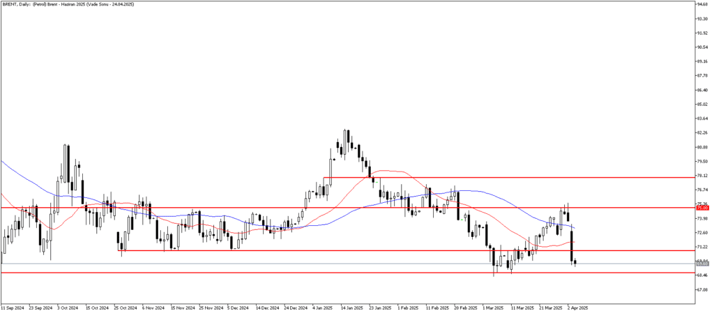 Teknik Analiz: Brent Petrol’de kritik hareketli ortalamalar ve 70.75 desteği kırıldı. Günlük kapanışın bu seviyeler altında gelmesiyle zayıf görünüm teyit edilmiş oldu. Bundan sonraki süreçte 68.65 seviyesi ilk destek bölgesi olarak takip edilecek. Yukarı tarafta ise 70.75 direnci aşılamadığı sürece yukarı yönlü eğilimin hız kazanmasını beklemeyiz.