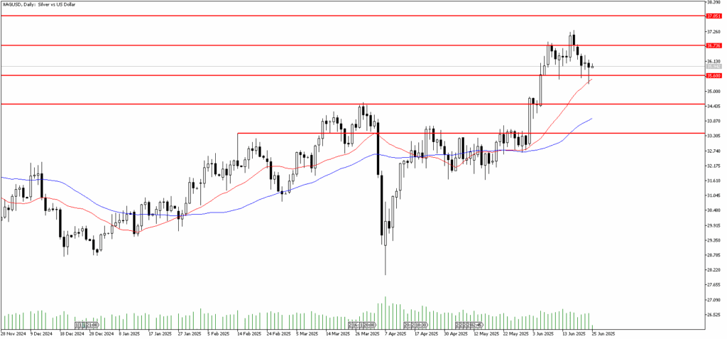 Gümüşte zayıf görünüm devam ediyor. İsrail – İran savaşında gerginliği azalması ve müzakere ihtimalinin masada olmasıyla risk iştahında azalma izledik. Emtialar üzerinde bu gelişmeler sonrası satış baskısının hakim olduğunu söylemek mümkün. Olası barış görüşmeleri konusunda somut bir adım atılması halinde gümüşteki geri çekilme devam edebilir. Fiyatlama önümüzdeki süreçte jeopolitik risk algısına göre şekillenecektir.