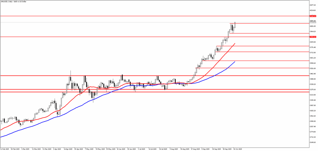Ons altın Trump’ın gümrük tarifeleriyle ilgili gelişmelerden tekrar yönünü yukarı çevirdi. Dolar endeksi (dxy) bu sabah 98 seviyesi civarında hareket ederken yükselişine bir miktar ara verdi. Ons altın için devam eden talepte ABD hükümetinin hala kapalı olması ve bu nedenle verilerin gelmemesiyle birlikte piyasanın Fed’e yönelik tahminlerinde zorlanması var. Buna ek olarak Çin’e getirilen %100 gümrük tarifesi eklendi. Buna ek olarak Afganistan’ın Pakistan sınırındaki Paktiya vilayetinde iki ülke sınır güçleri arasında çatışma çıktı. Bunların hepsi, ons altını yükselten etkiler arasında bulunuyor. Jeopolitik risklerin yanı sıra merkez bankalarının güçlü altın alımları, borsa yatırım fonu girişleri, ABD’de faiz indirimi beklentileri ve gümrük vergilerinden kaynaklanan ekonomik belirsizlikler altının yeni rekor seviyesinde katkıda bulundu. Trump’ın ticaret savaşını yeniden kızıştırması güvenli liman varlıklarına talebin sürmesini destekleyebilir.