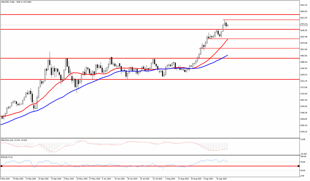 Teknik Analiz: Teknik olarak ons altında bu yaşanan geri çekilme sağlıklı ve normal. 3800 seviyesinde oluşan direnç kısa vadede işlemeye devam edebilir. Bu seviyeye kadar olan yükselişlerde 3800 – 3810 civarından güç kaybı yaşanması beklenebilir. Ancak bu kısa vade için geçerli. Orta ve uzun vadede ana yön yukarı olmaya devam ediyor. Şimdilik 3705 seviyesi yakın ve güçlü destek konumunda. Bu seviyenin üzerinde tutunma gerçekleşmesi halinde 3705 – 3800 arasında yatay eğilim devam edebilir. Buna karşın 3705 seviyesi altında geri çekilme olması halinde düzeltmenin 3620 seviyesine doğru sürmesi beklenebilir.