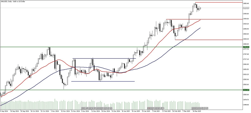Ons altında hafta başından bu yana 3000 – 3035 dolar seviyeleri arasında bulunan yatay bantta sakin bir seyir izliyoruz. Dolar Endeksi (DXY) tarafından ise tepki yükselişi sonrası 104.50 seviyesi direnç haline gelmiş durumda. Bu direncin aşılması halinde Dolar Endeksinde yukarı yönlü eğilim güç kazanabilir ve ons altında satış baskısı yaratabilir. Küresel tarafta ana gündem gümrük tarifeleri ve Ukrayna’da olası bir ateşkese yönelik atılan adımlar olmaya devam ediyor.